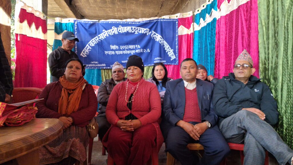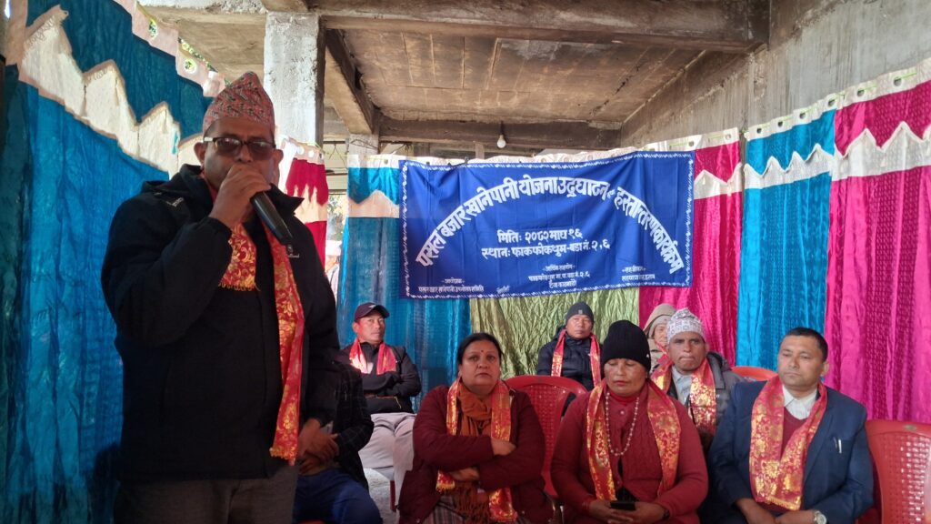 फाकफोकथुम, १७ माघ : इलामको फाकफोकथुम गाउँपालिका २ र ६ स्थित फँलाटे बजारमा ‘पसल बजार खानेपानी योजना’ संचालमा आएको छ । उक्त आयोजनाको शुक्रबार एक कार्यक्रमका बीच उद्घाटन तथा हस्तान्तरण गरिएको जनाइएको छ । पसल बजार खानेपानी उपभोक्ता समितिद्वारा आयोजित कार्यक्रममा फाकफोकथुम गाउँपालिका अध्यक्ष दिपेन्द्र खनालले खानेपानी योजनाको उद्घाटन गर्नु भएको हो ।